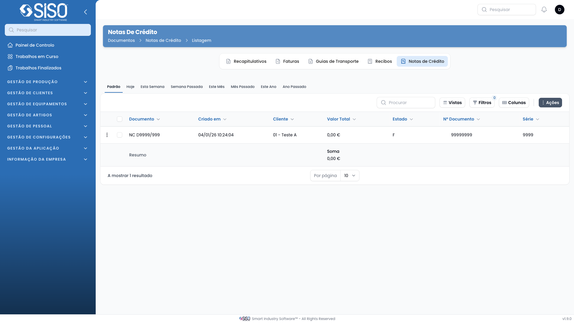 The "Credit Notes" page provides a list of all credit notes generated in the system. It allows users to manage, view, and filter credit notes related to client transactions. The page helps users keep track of issued credit notes and manage their financial records accordingly.