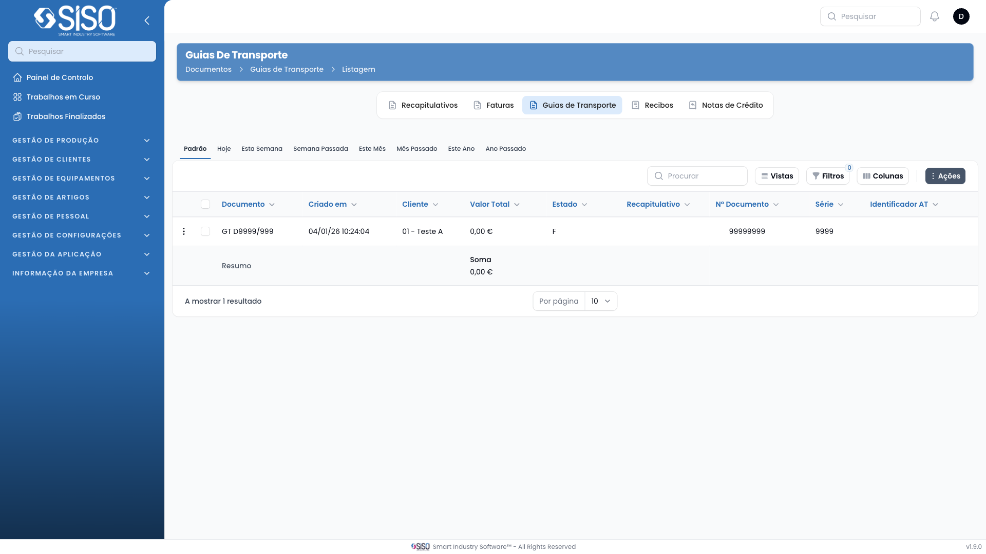 - Filters: Lets users apply filters to find transport documents based on time periods or other relevant criteria.