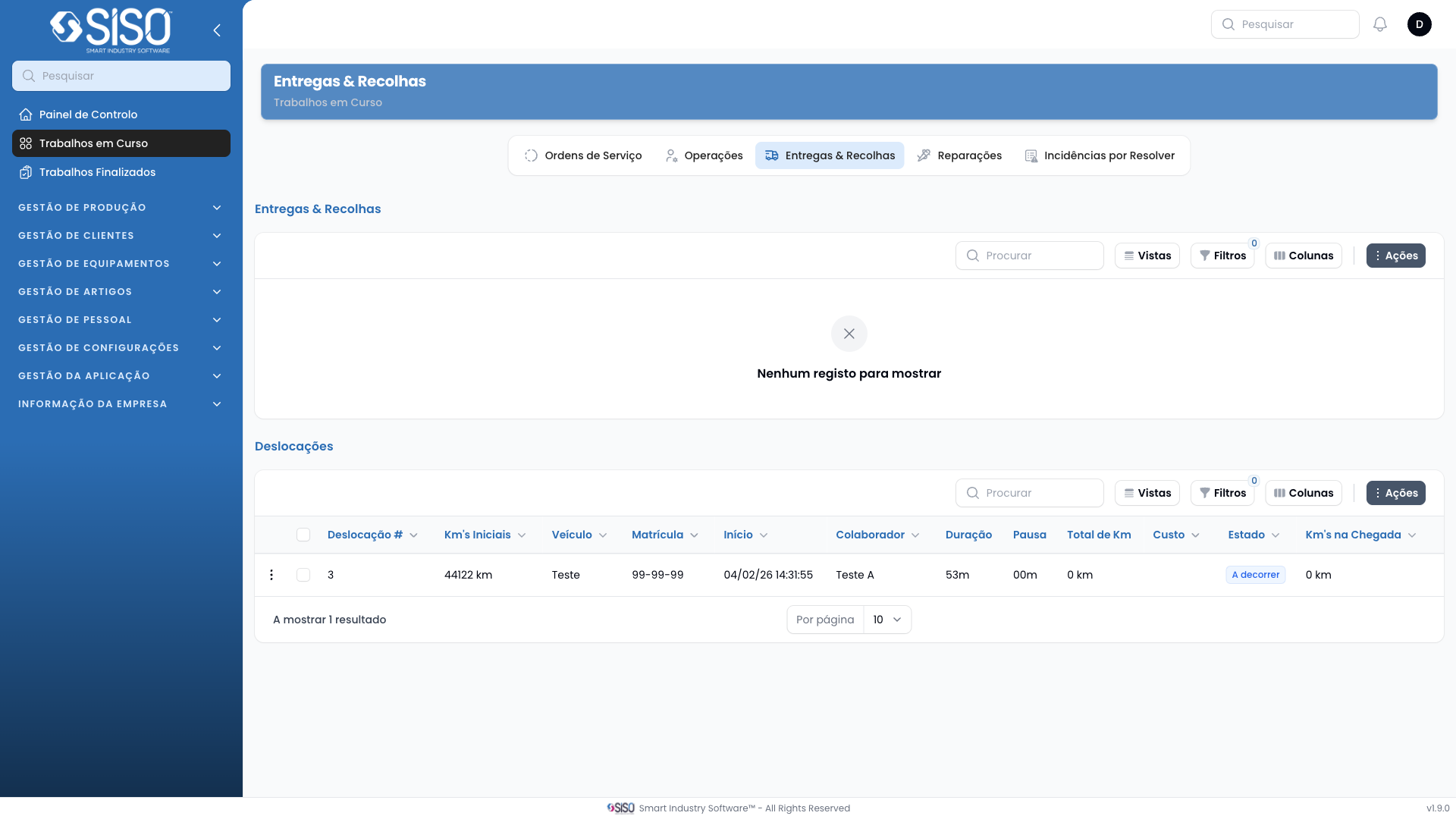 This table lists all retrievals and deliveries ongoing at the momment, providing detailed information about the vehicle, employee responsible, and more.