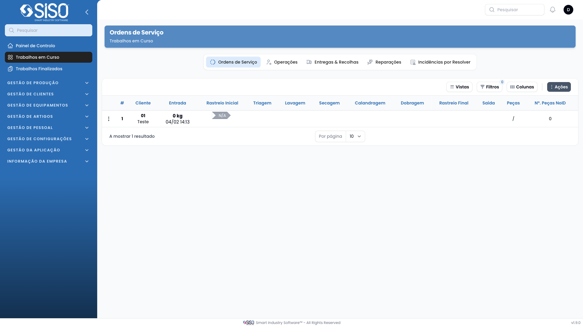 This page provides a detailed overview of the current work orders, including their status and the different stages of processing.